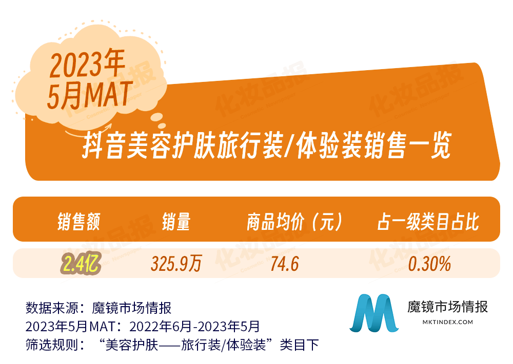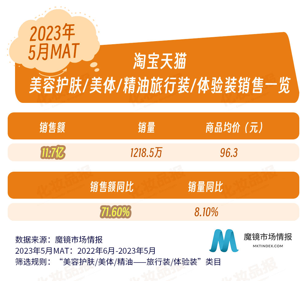 近日,國內(nèi)零售洞察公司魔鏡市場情報發(fā)布了一份關(guān)于化妝品旅行裝/體驗裝在各主流電商平臺的銷售調(diào)研報告。報告統(tǒng)計的類目主要針對彩妝、香水、美妝工具、美容護(hù)膚、美體和精油類旅行裝/體驗裝,統(tǒng)計調(diào)查的平臺涵蓋淘寶、天貓、抖音等,統(tǒng)計周期為2022年6月-2023年5月。