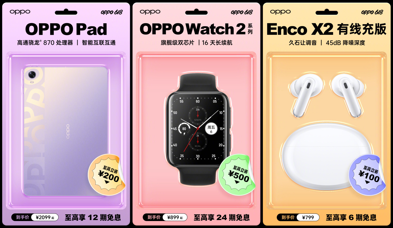 除了以上各款智能手機以外,OPPO豐富的IoT產(chǎn)品也擁有不同程度的優(yōu)惠,搭載驍龍870處理器的OPPO Pad平板電腦至高立省200,到手價僅2099元起;OPPO Watch 2系列至高立省500,到手價899元起,還可享24期免息;真無線藍牙耳機OPPO Enco Air2 Pro至高立省50元,僅需249即可入手。